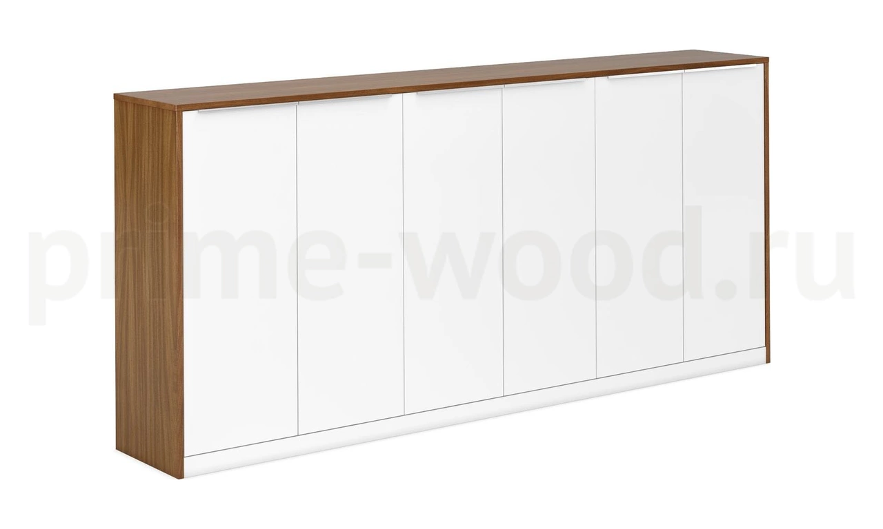 Средний шкаф, 6 белых глянцевых дверей с алюминиевыми ручками. Корпус - шпон грецкого ореха TA23YA.