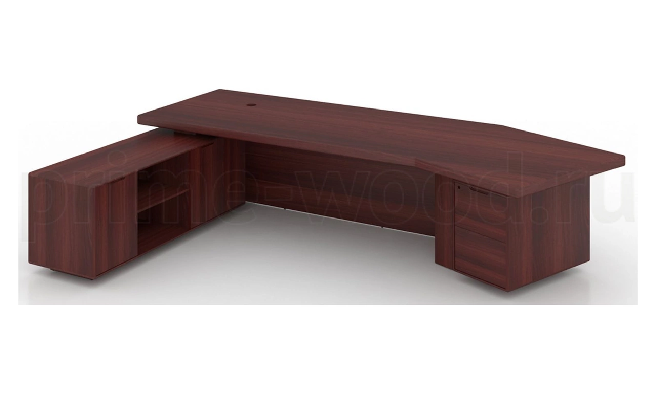 Стол для руководителя L-образной формы с отделкой из шпона и мобильной опорной тумбой